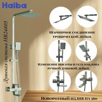 Душевая система изготовлена из высококачественной нержавеющей стали AISI 304, соответствующей нормам ГОСТ и СанПин, что обеспечивает длительный срок службы и безопасность применения. На все изделия Haiba распространяется гарантия 5 лет. Средний срок службы 15 лет.