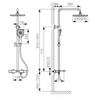 Верхний (тропический) душ - телескопический с возможностью регулировки высоты после установки от 853 до 1403