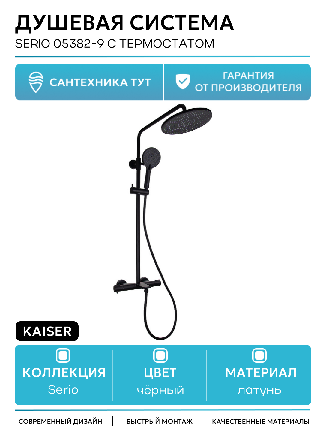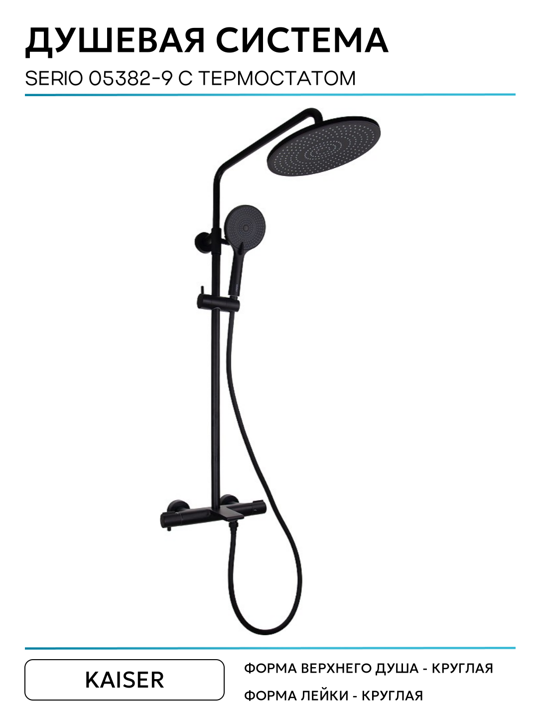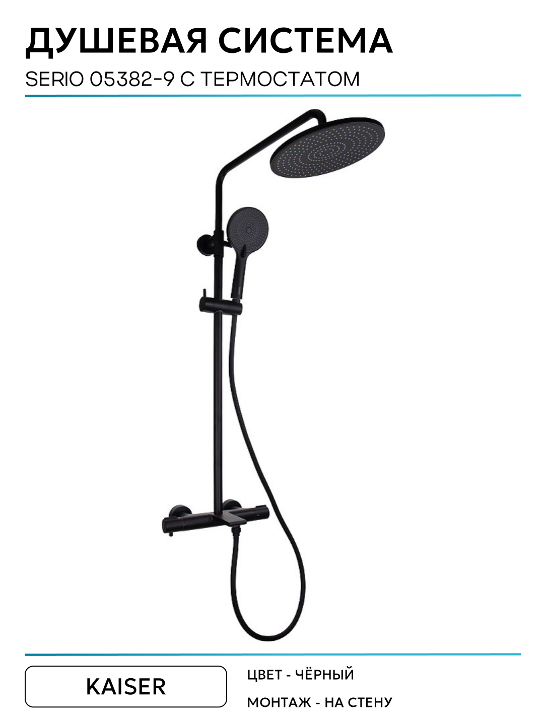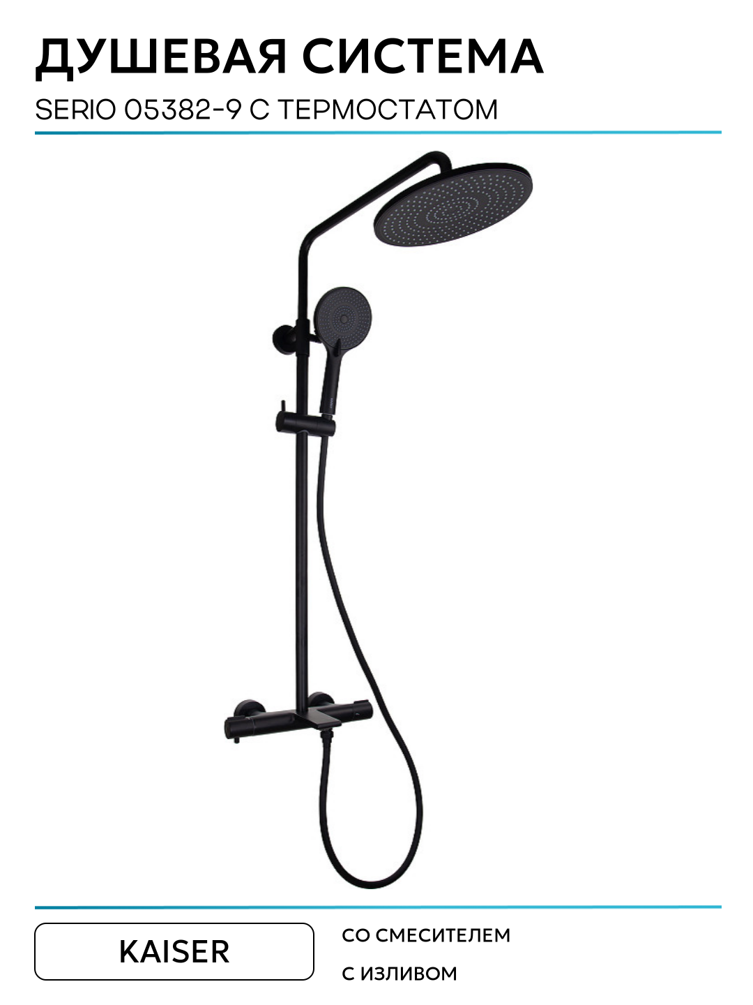 Душевая система Kaiser Serio 05382-9 с термостатом Черная матовая латунь на стену с изливом со смесителем: сравнение цен, характеристики, фото, актуальное наличие и цены.