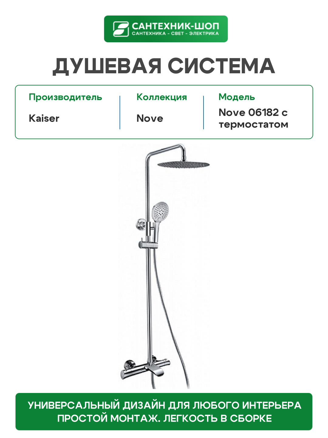 Купить Душевая система Kaiser Nove 06182 с термостатом Хром латунь на стену с доставкой по всей России.