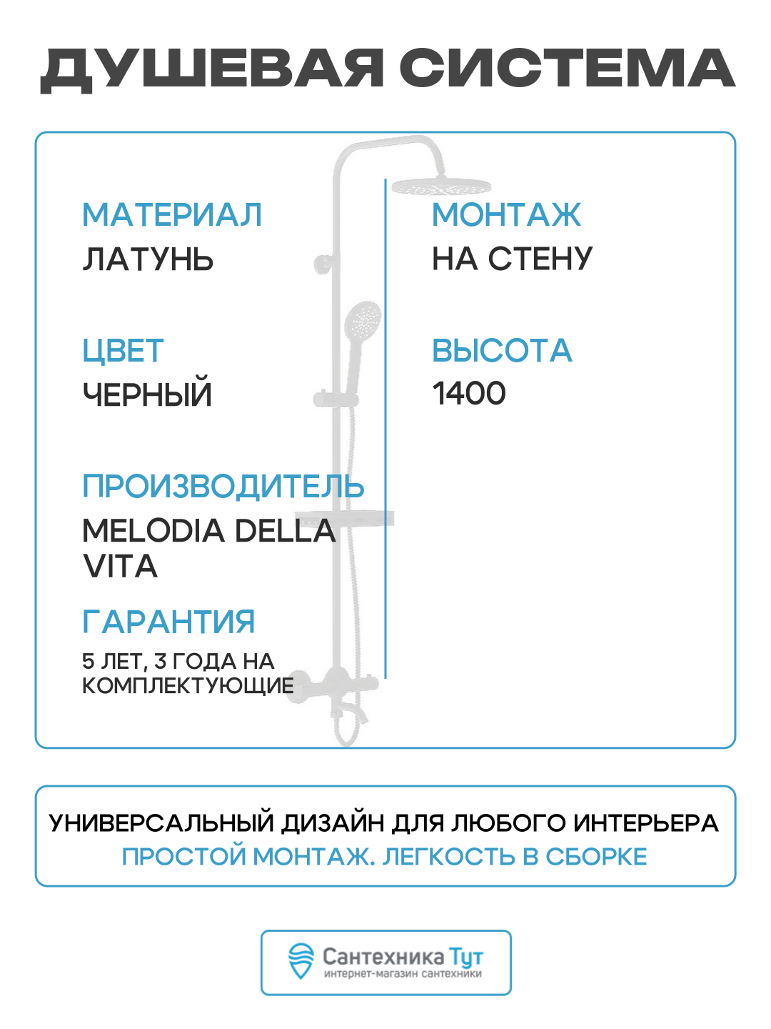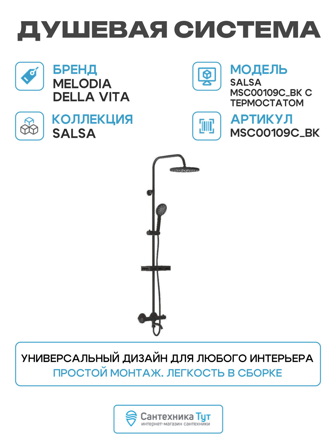 Душевая система Melodia della vita Salsa MSC00109С_bk с термостатом Черная матовая: сравнение цен, характеристики, фото, актуальное наличие и цены.