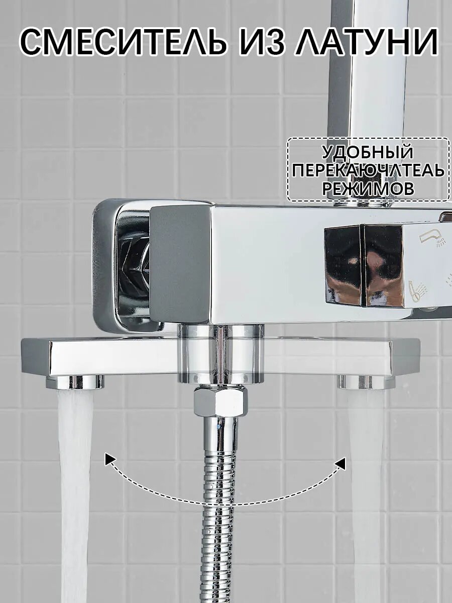 Душевая система , нержавеющая сталь, латунь, 3 режима, тропический дождь