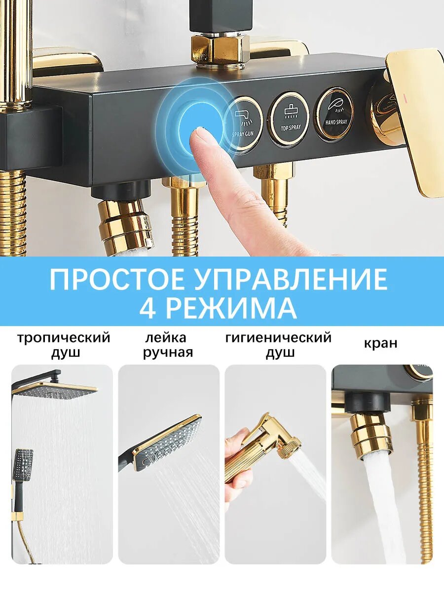 Душевая система, включающая различные сантехнические устройства от ououfaucet, - современный выбор для вашей ванной комнаты! Это удобное приспособление, которое имеет 4 вида излива: тропический дождь, гигиенический душ, поворотный кран и душевая лейка. Высокая вертикальная душевая лейка «тропический дождь» обеспечивает верхний поток воды во время принятия душа. Смеситель и основные элементы изготовлены из алюминия, а сердечник клапана - из высококачественной керамики. Универсальное оборудование подходит для ванны и душевой кабины. В комплект входят душевая стойка, трубка, тропический душ и душевая лейка, шланг, монтажный комплект, гигиенический душ. Сантехническая система не требует сложного монтажа. Это практичное приобретение для дома, квартиры и дачи. Силиконовые вставки тропического душа обеспечивают самоочистку конструкции от налета. Смеситель оснащен встроенным керамическим картриджем, который выполняет функцию фильтра для воды. Штанга телескопическая и позволяет регулировать высоту для любых целей, можно приобрести удлинитель для регулировки душевой лейки тропического водопада. Эффективно очищает поток от примесей и снижает уровень шума. Переключение настенной системы осуществляется с помощью удобных кнопок на панели управления. Высокая вертикальная лейка тропического водопада обеспечивает верхний поток воды и облегчает принятие душа. Аксессуар для ванной комнаты не требует сложного монтажа. Поворотный механизм регулирует температуру воды. С этой системой вы обеспечите себе SPA-процедуры прямо в домашнем душе! Это качественная сантехника из металлических элементов, которая позволит вам управлять потоком воды, имеет гидромассаж. Душевая стойка с двойным креплением для тропического душа и душевая лейка обеспечат настоящий ливень или стандартный поток воды в вашей ванной комнате. Смеситель со встроенным фильтром и удобным переключателем поможет регулировать шум и поток воды. Душевая система ououfaucet - это базовый комплект для установки душевой кабины.
