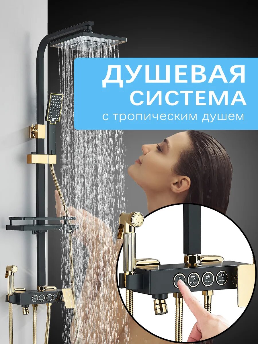 Купить Душевая система Ououfaucet Black Gold, тропический дождь, с переключателем, ABS-пластик, алюминий с доставкой по всей России. Душевая система Ououfaucet Black Gold, тропический дождь, с переключателем, ABS-пластик, алюминий: сравнение цен, характеристики, фото, актуальное наличие и цены.