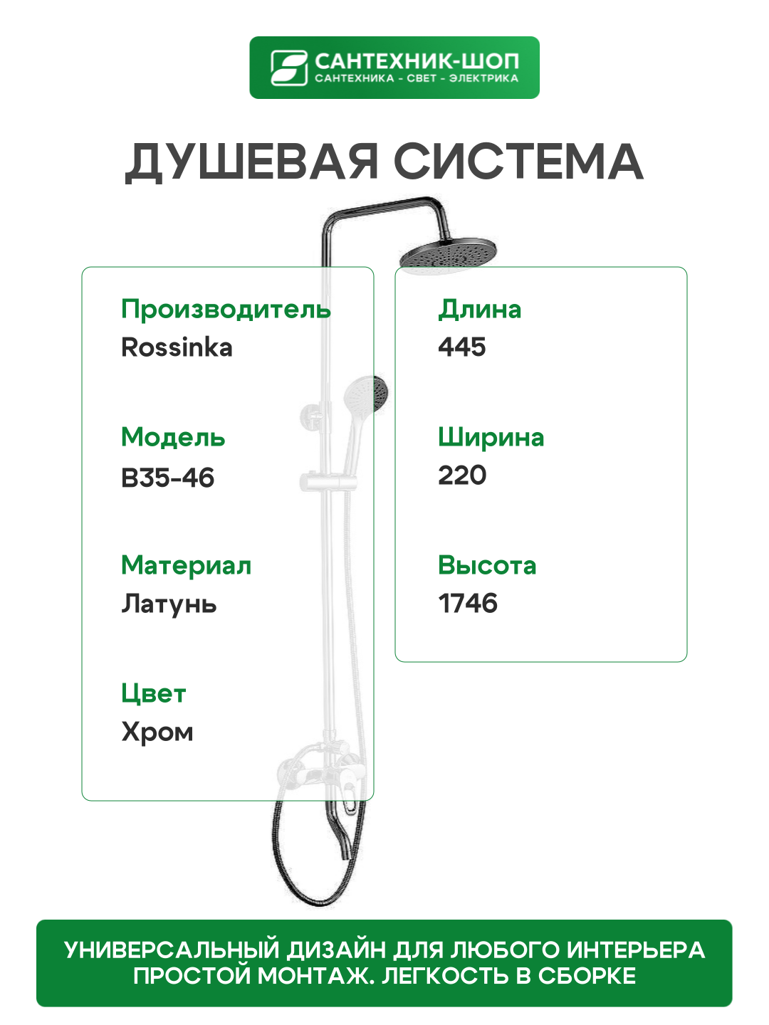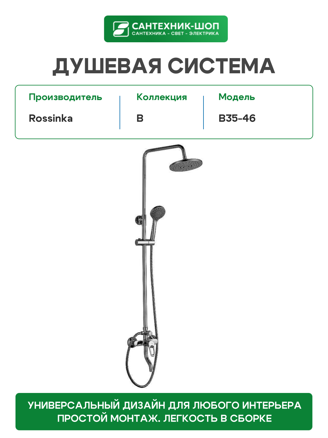 Душевая система Rossinka B35-46 Хром: сравнение цен, характеристики, фото, актуальное наличие и цены.
