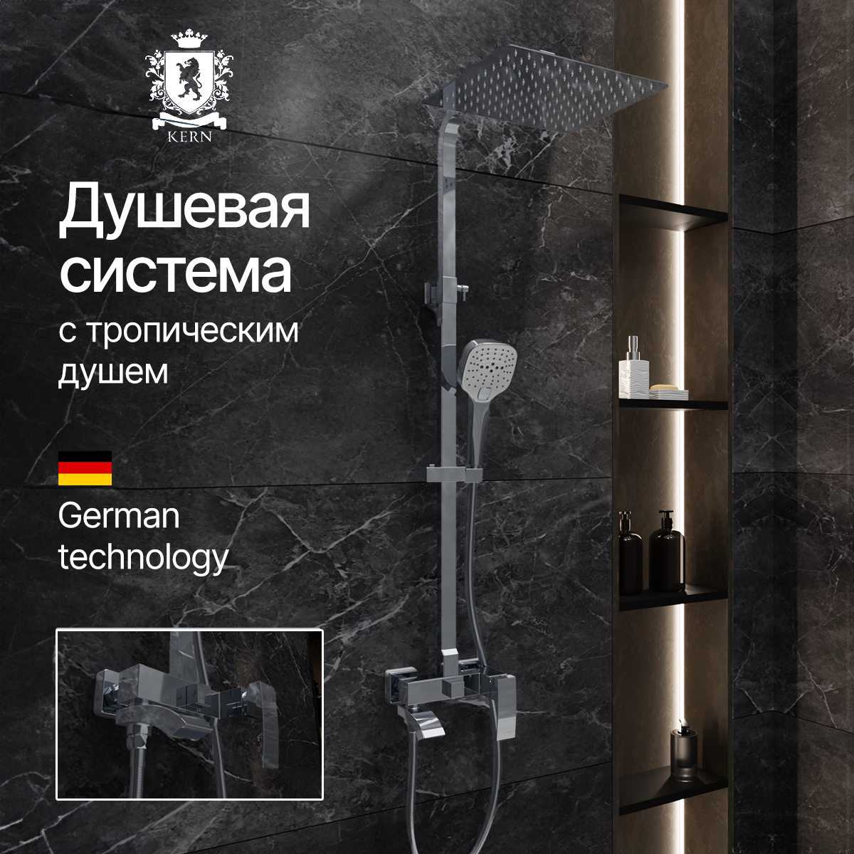 Душевая система с поворотным изливом KERN 5057 хром: сравнение цен, характеристики, фото, актуальное наличие и цены.