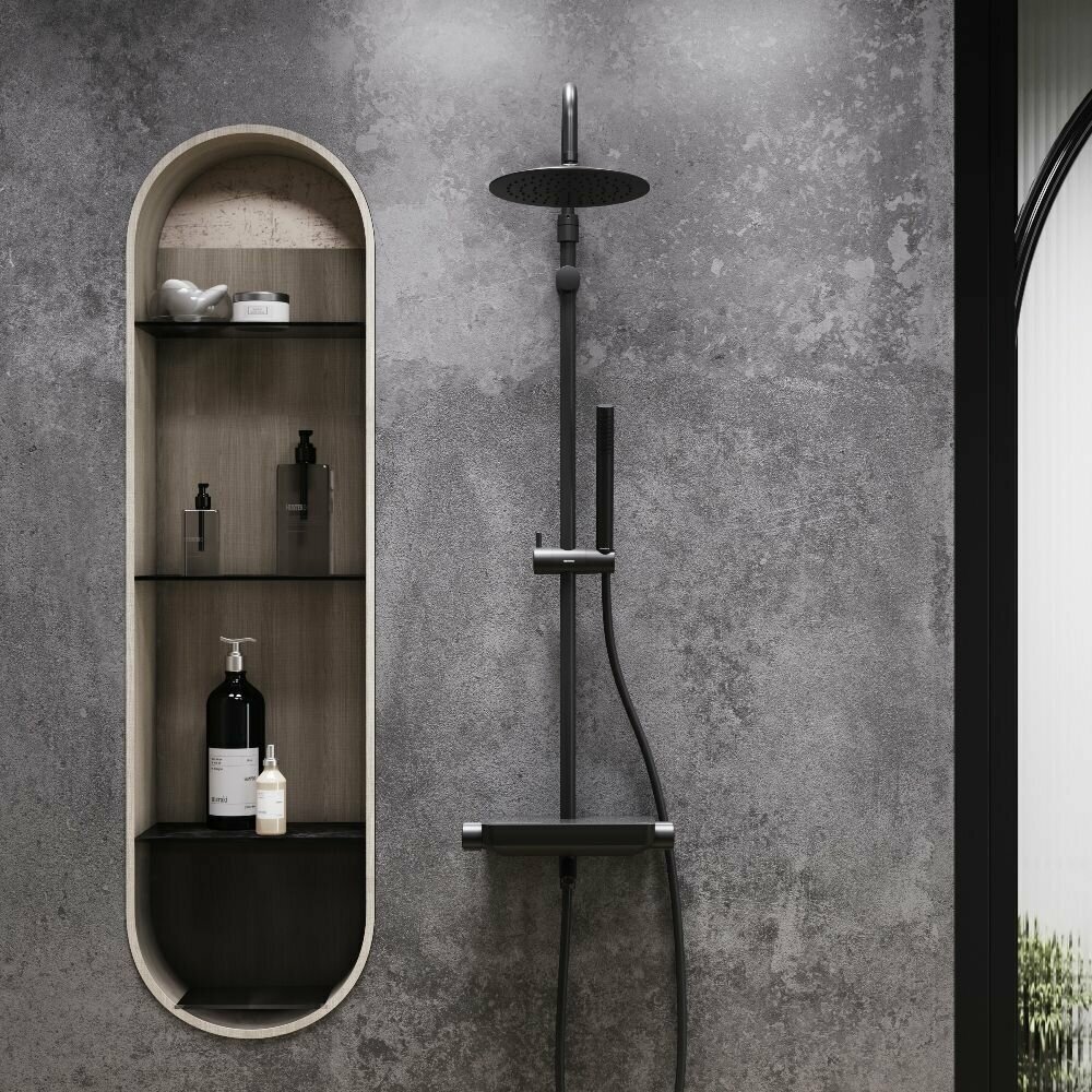 Душевая система Damixa Scandinavian Pure, с термостатом, черный: сравнение цен, характеристики, фото, актуальное наличие и цены.