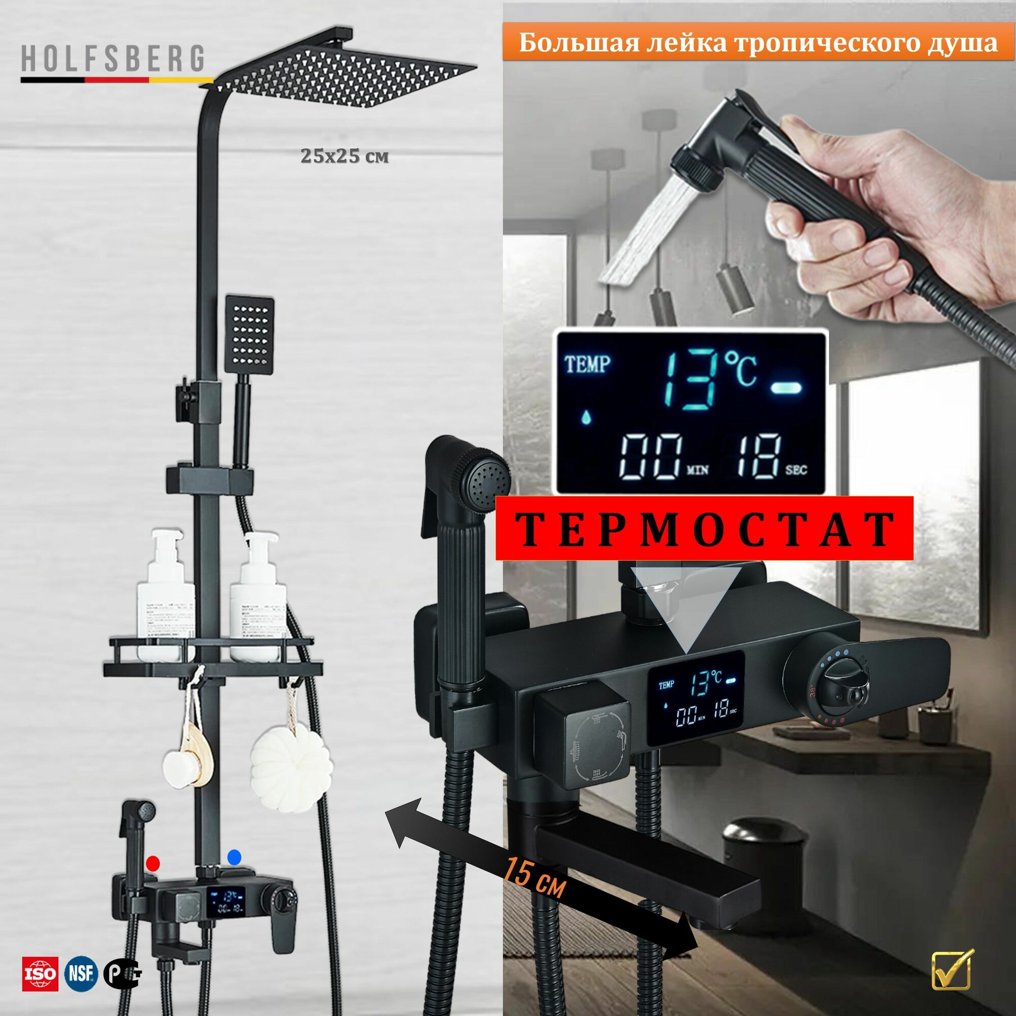 Душевая система с термостатом черная и с тропическим душем HOLFSBERG A25 TERMO DG BL-2: сравнение цен, характеристики, фото, актуальное наличие и цены.