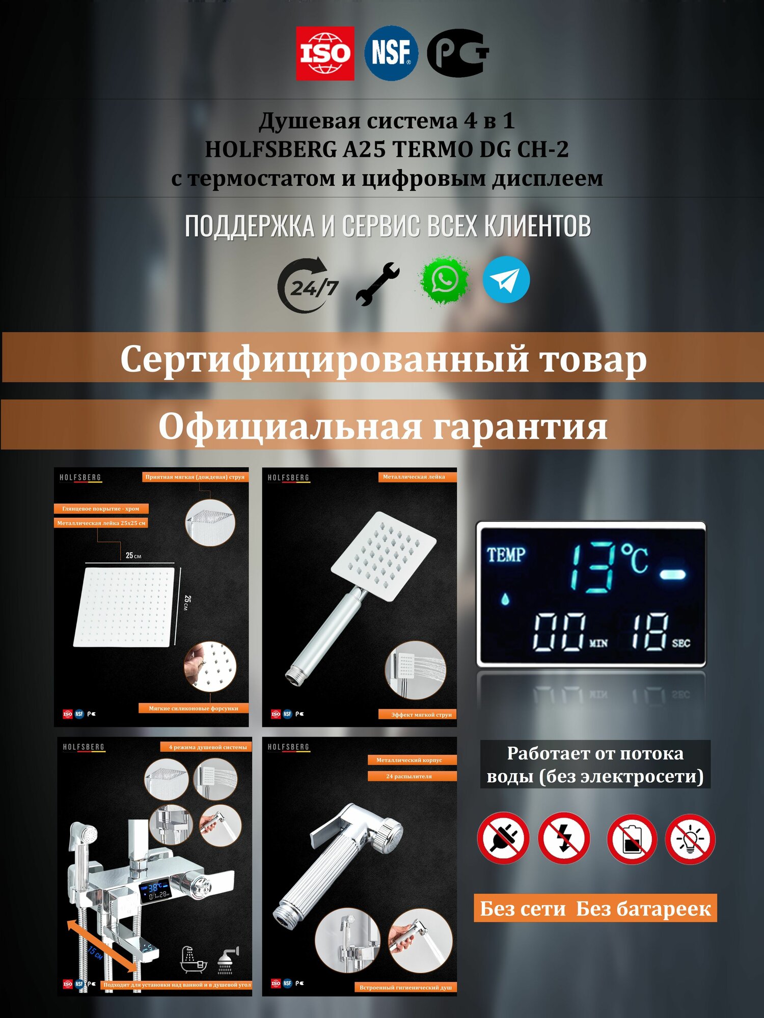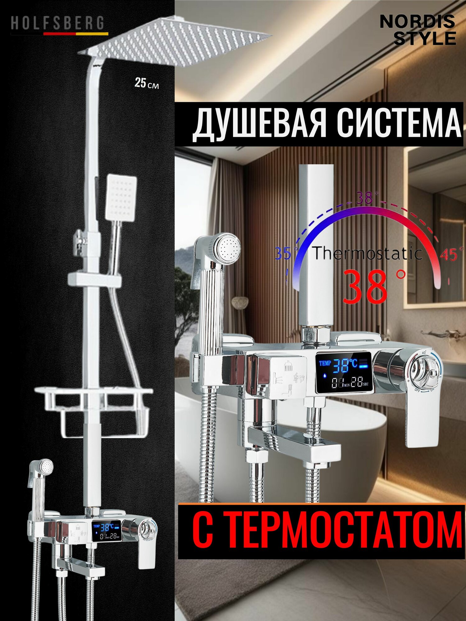 Душевая система HOLFSBERG с термостатом и встроенным дисплеем имеет продуманную эргономику и современный дизайн который гармонично впишется в интерьер любой ванной комнаты.