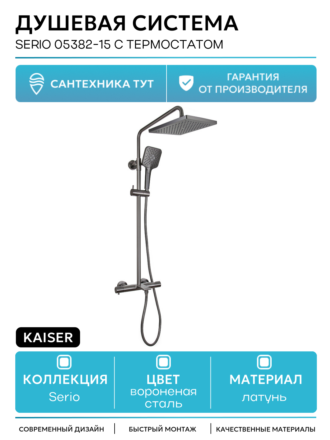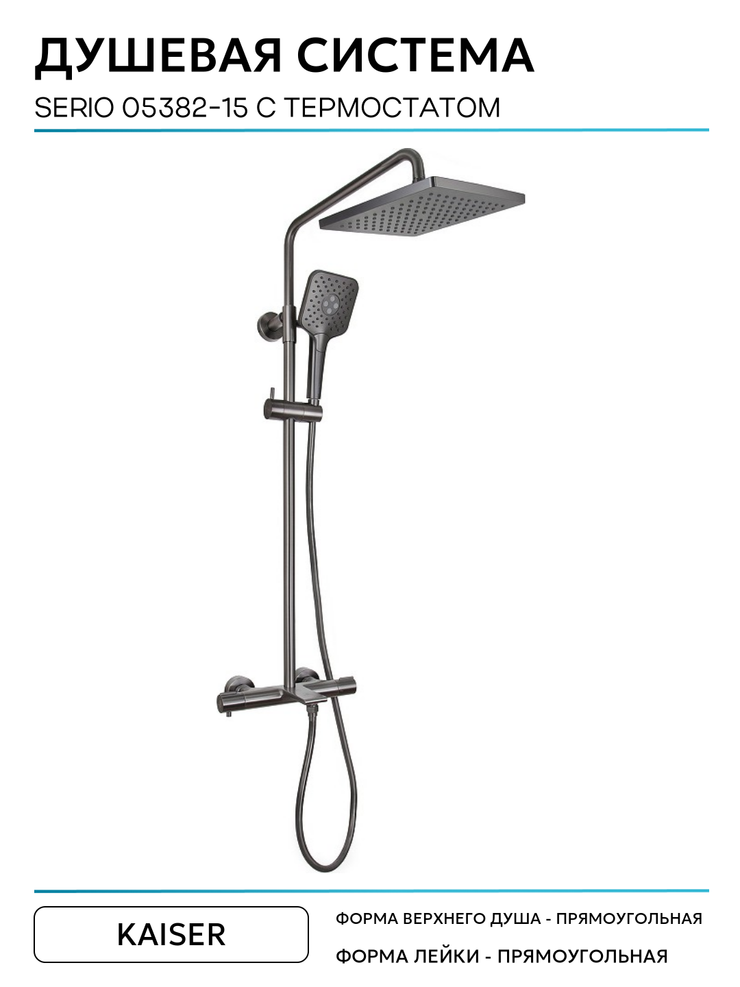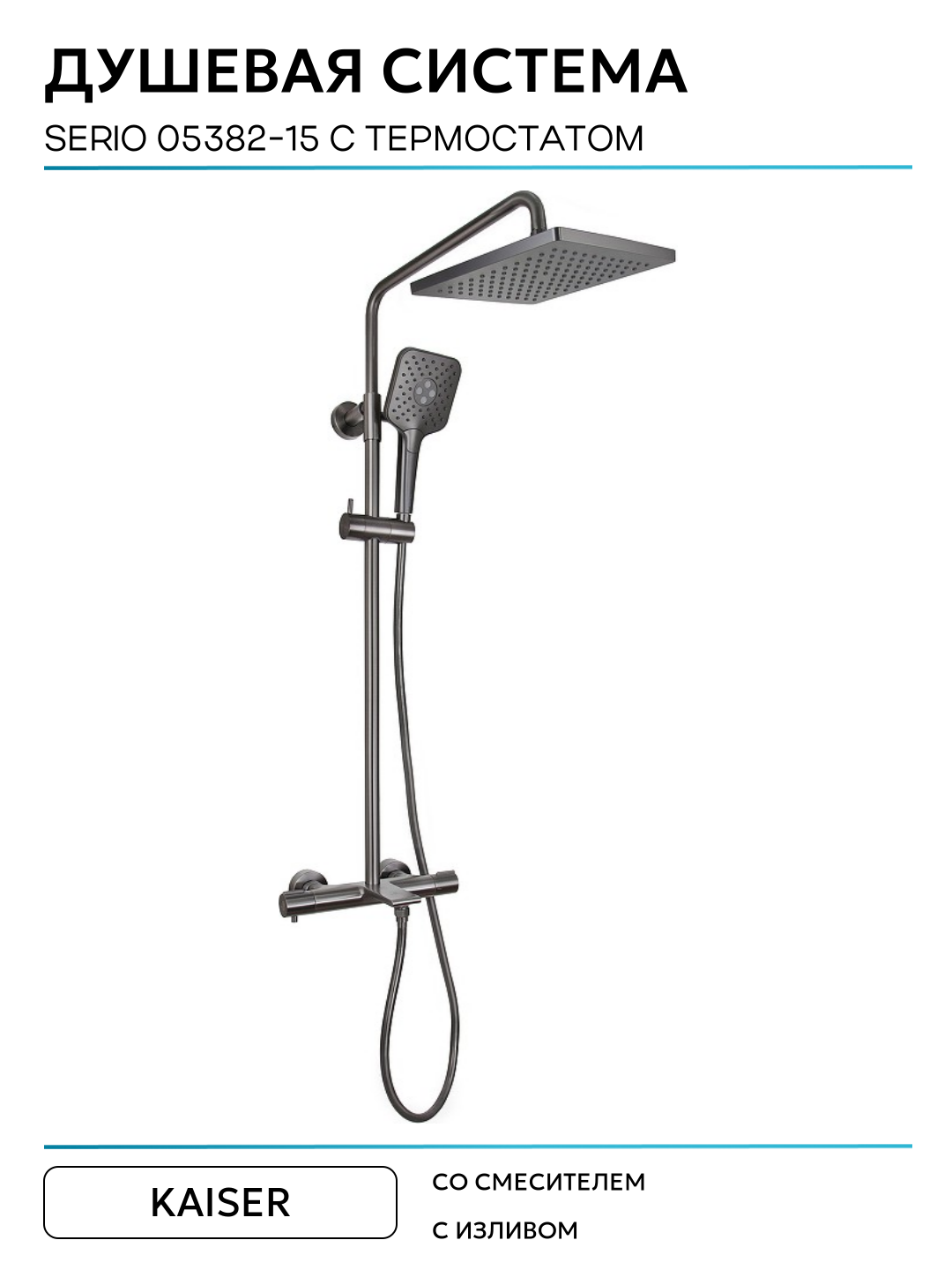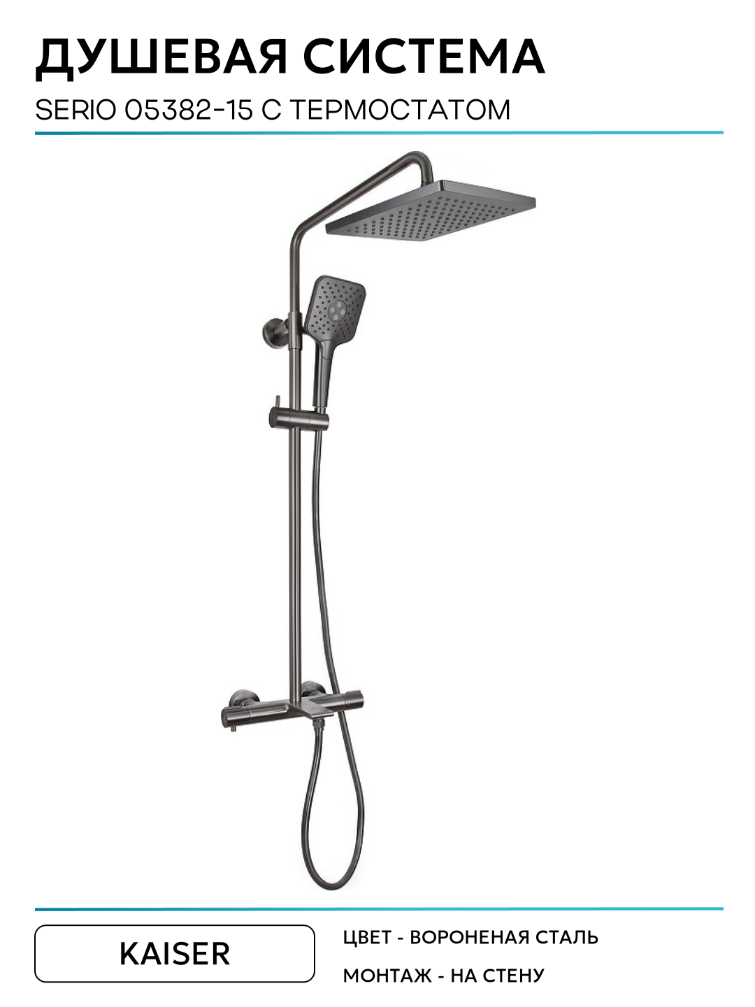 Душевая система Kaiser Serio 05382-15 с термостатом Вороненая сталь латунь на стену с изливом со смесителем: сравнение цен, характеристики, фото, актуальное наличие и цены.