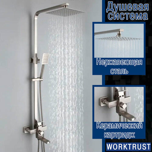 Душевая система со смесителем из нержавеющей стали WorkTrust, имеет 3 режима (Тропический душ, ручная лейка и излив). Идеально подходит для установки в душевых уголках, а так же в ваннах. Душевая стойка оснащена смесителем с однорычажным переключением и поворотным изливом, ручной душевой лейкой и верхним тропическим душем. Смеситель, душевая стойка, лейка и тропический душ - из нержавеющей стали SUS 304. Модели: WT2402 - в цвете хром, WT2402-6 - черный цвет. Гарантия - 5 лет на корпус, 1 год на комплектующие. Для осуществлении гарантии требуется только электронный чек. Мы являемся официальными представителями и по вопросам гарантийного обслуживания можно обращаться к нам. Внутри и на поверхности душевой системы могут встречаться силиконовая смазка и пятна от нее. Она используется для сохранения эксплуатационных свойств в процессе хранения и транспортировки. Пятна легко удаляются мыльным раствором. Душевой комплект поставляется в плотной заводской коробке и дополнительно упаковывается нами в толстую пленку.