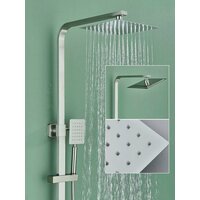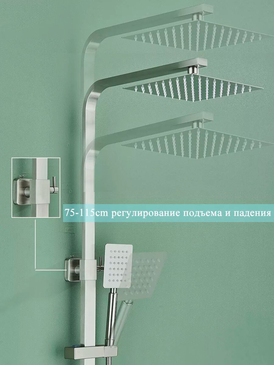 Душевая система включает в себя смеситель, тропический душ и ручную лейку. Ручная лейка из латуни выполнена в прочном корпусе современного дизайна. Высота душевой стойки регулируется и фиксируется с помощью держателя на телескопической штанге. Фирменные технологии производства картриджей Sedal создают плавность и точность регулировки напора и температуры воды, которая сохраняется на протяжении всего срока использования в ванной комнате. . Аэратор позволяет уменьшить расход воды и сэкономить водные ресурсы. Встраиваемую систему легко закрепить на стене или стенке душевой кабины с помощью скрытого настенного крепежа в комплекте. Душевой гарнитур идеально впишется в интерьер вашей ванной комнаты. Желаем приятных покупок!