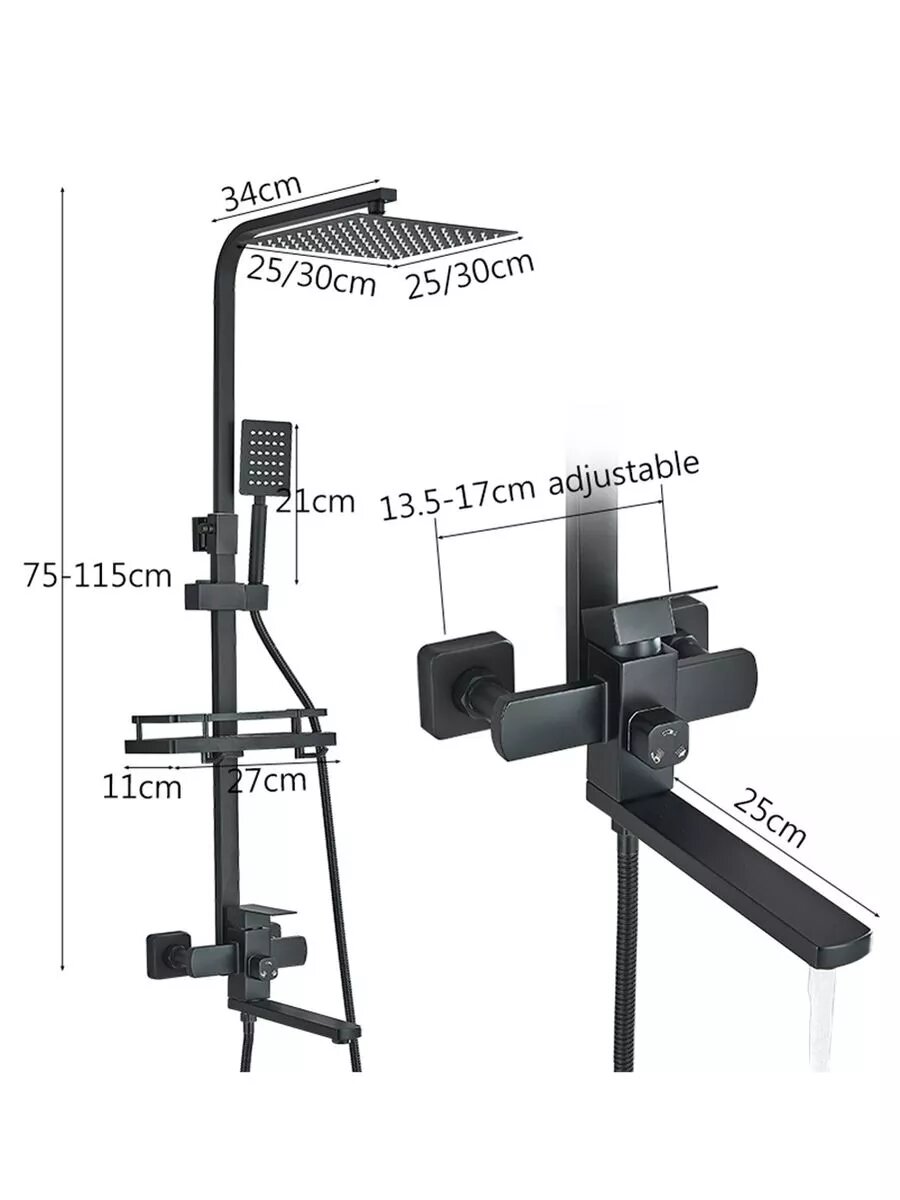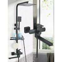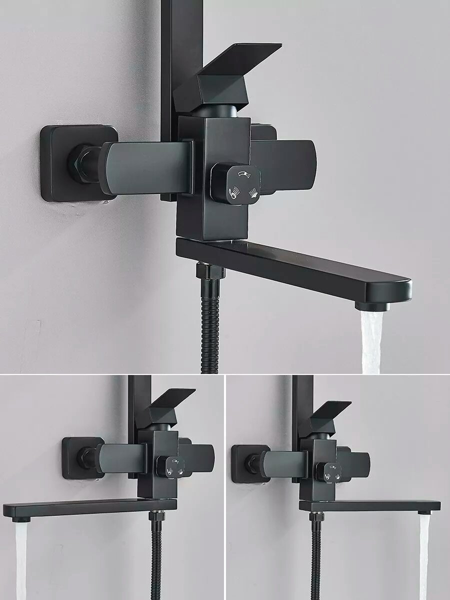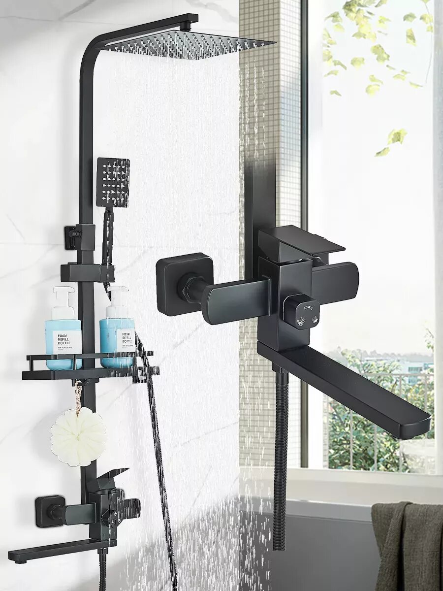 Черная душевая система из латуни - это стильное и элегантное решение для ванных комнат с любым интерьером. Элементы выполнены в черном цвете, что придает системе особый шарм и привлекательность. Шланги выполнены из высокопрочных материалов для устойчивости к повреждениям или разрывам. Каждый элемент системы тщательно подобран для достижения оптимальной функциональности и эстетического оформления всего комплекта. Черная латунная душевая стойка со смесителем является отличным выбором для тех, кто хочет добавить индивидуальности своей ванной комнате. Душевая система представляет собой комплект, который включает в себя душевую стойку со смесителем и тропическим душем. Она выполнена из высококачественной латуни, что обеспечивает ей прочность и надежность на многие годы использования. Данная модель душевой стойки имеет удобный переключатель режимов подачи воды: от классического до тропического дождя. Также она оснащена регулируемым креплением для установки на любую высоту. Гарнитур со смесителем под ваннyю выполнен из латуни.