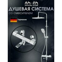 Купить Душевая система с тропическим душем AM.PM Brava смесителем хром, смеситель с термостатом, складной излив с доставкой по всей России.