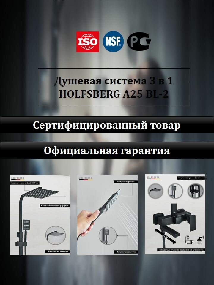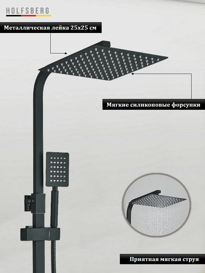 Душевая система с тропическим душем черная HOLFSBERG A25 3в1 BL-2: сравнение цен, характеристики, фото, актуальное наличие и цены.