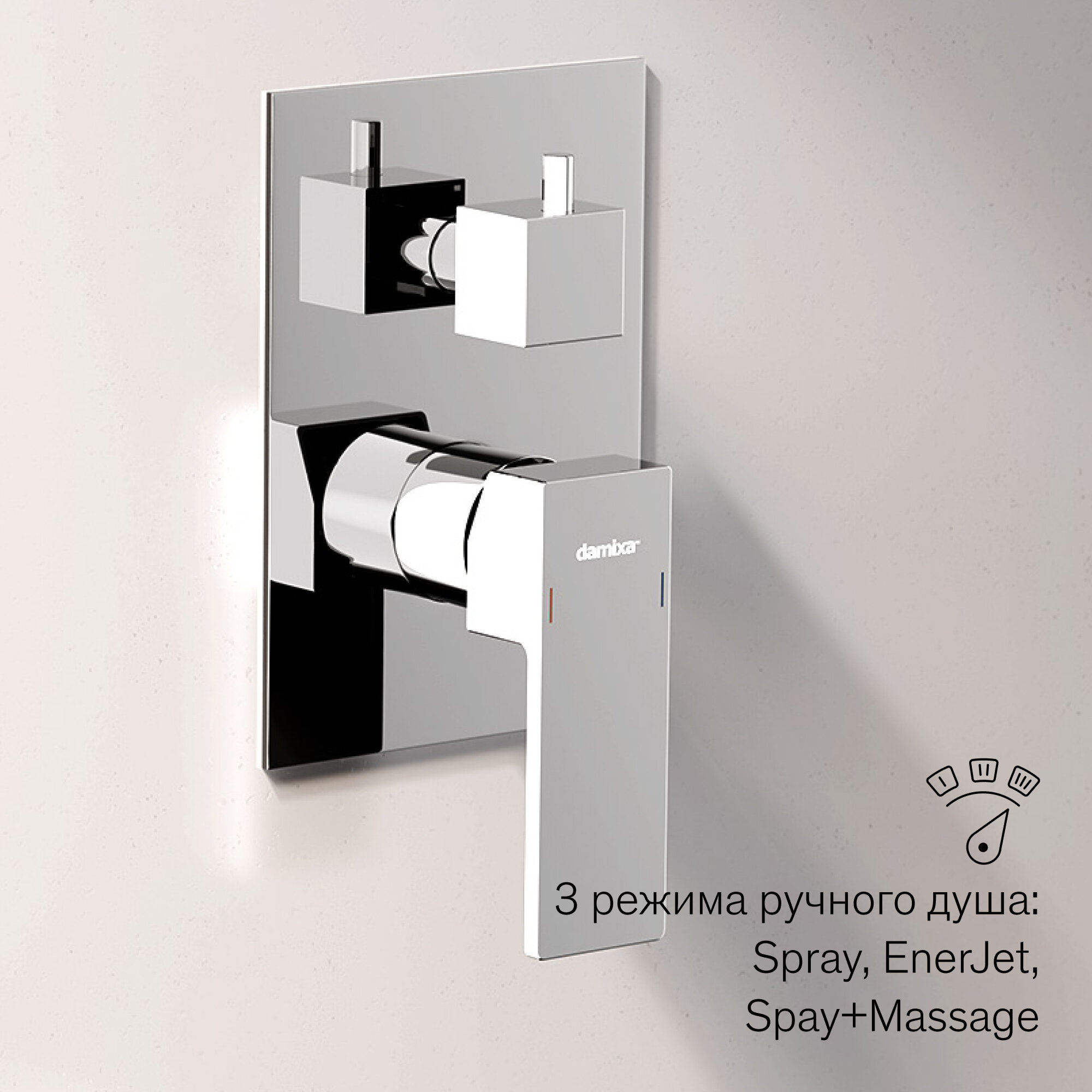 Переключение режимов (тропический, ручной душ и излив) с помощью плавного поворота дивертора.
