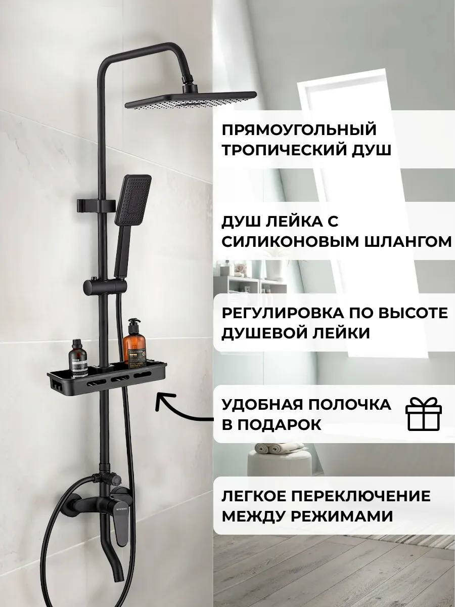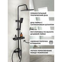 душевой комплект с тропическим дождём, тропический душ с полочкой, душ с экономией воды, душ с регулируемой лейкой, душевая система для ванной, комплект для душа с гибким шлангом
