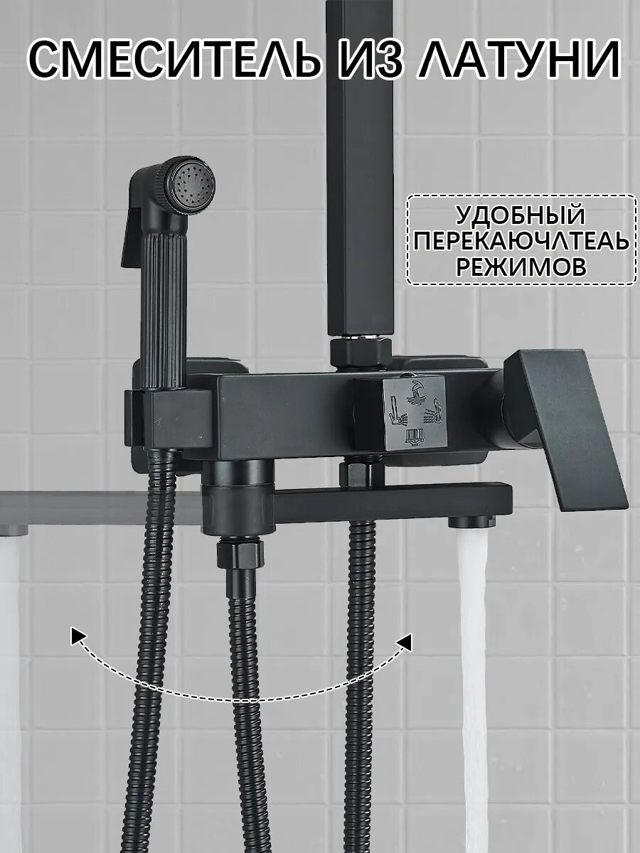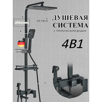 Купить Душевая система с тропическим душем для ванной со смесителем, душевая стойка, душевой комплект,чёрный металл с доставкой по всей России.