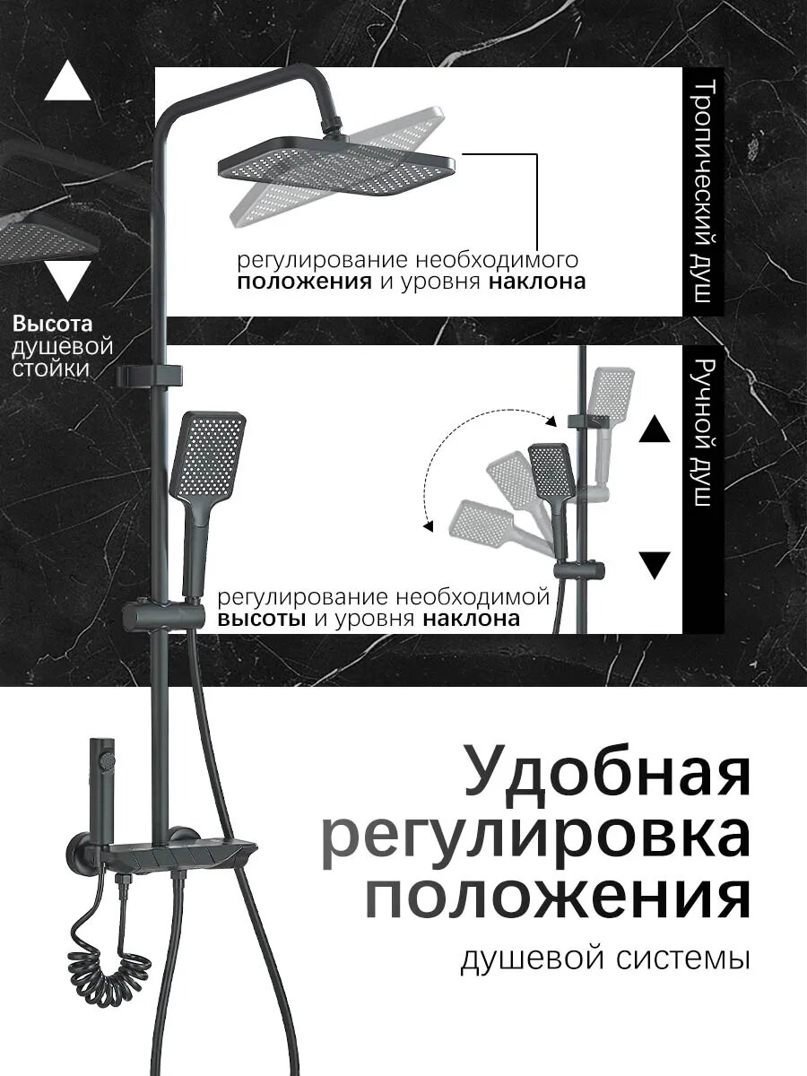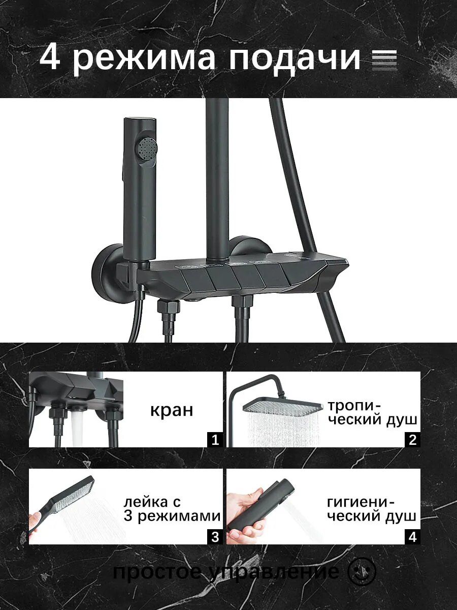 | Режимы | массажная струя, мягкая струя, смешанная струя, тропический дождь |