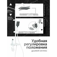 | Особенности | держатель душевой лейки, поворотный излив, регулируемый верхний душ |