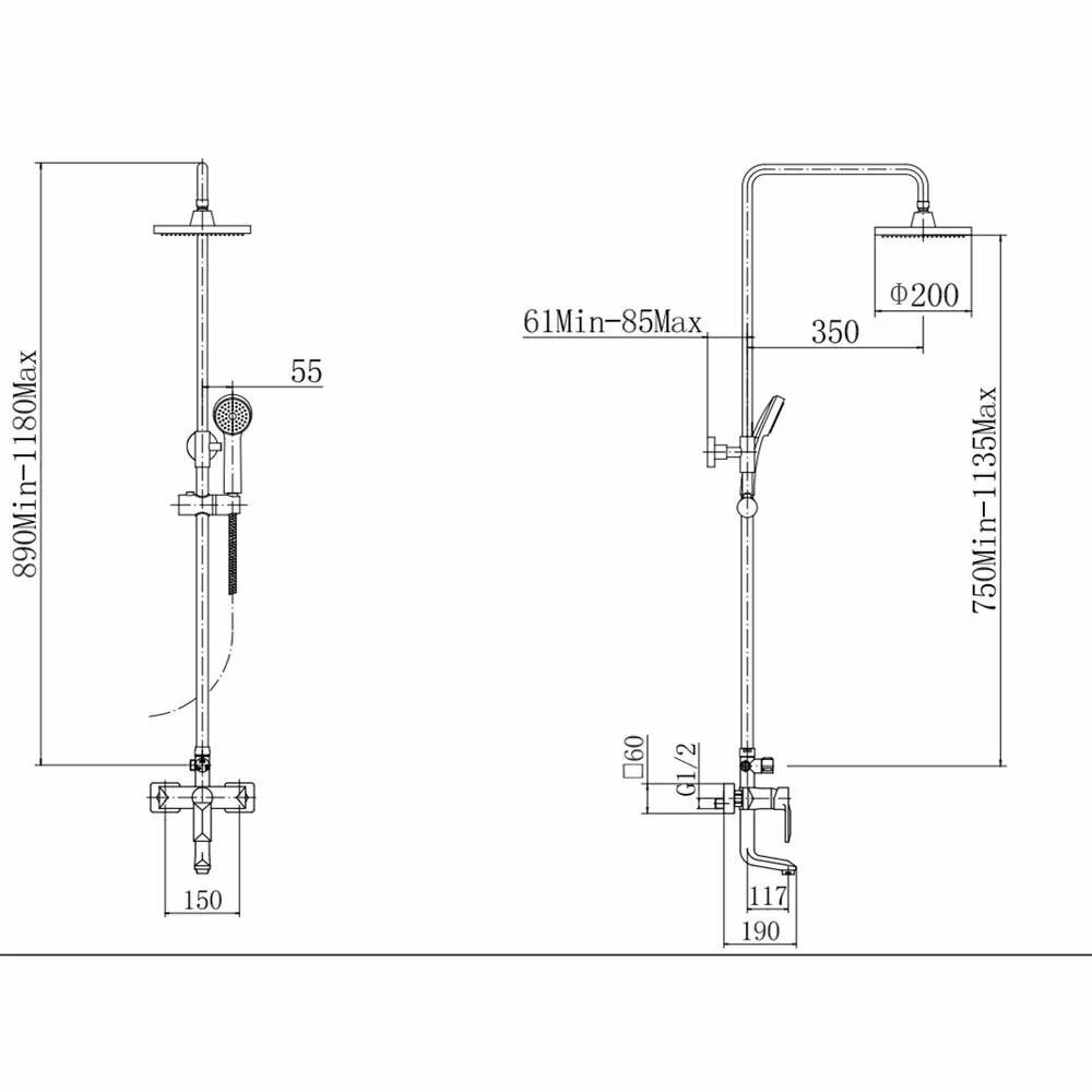 Душевая система с термостатом Wonzon&Woghand, Темный графит WW-88739902-BGM