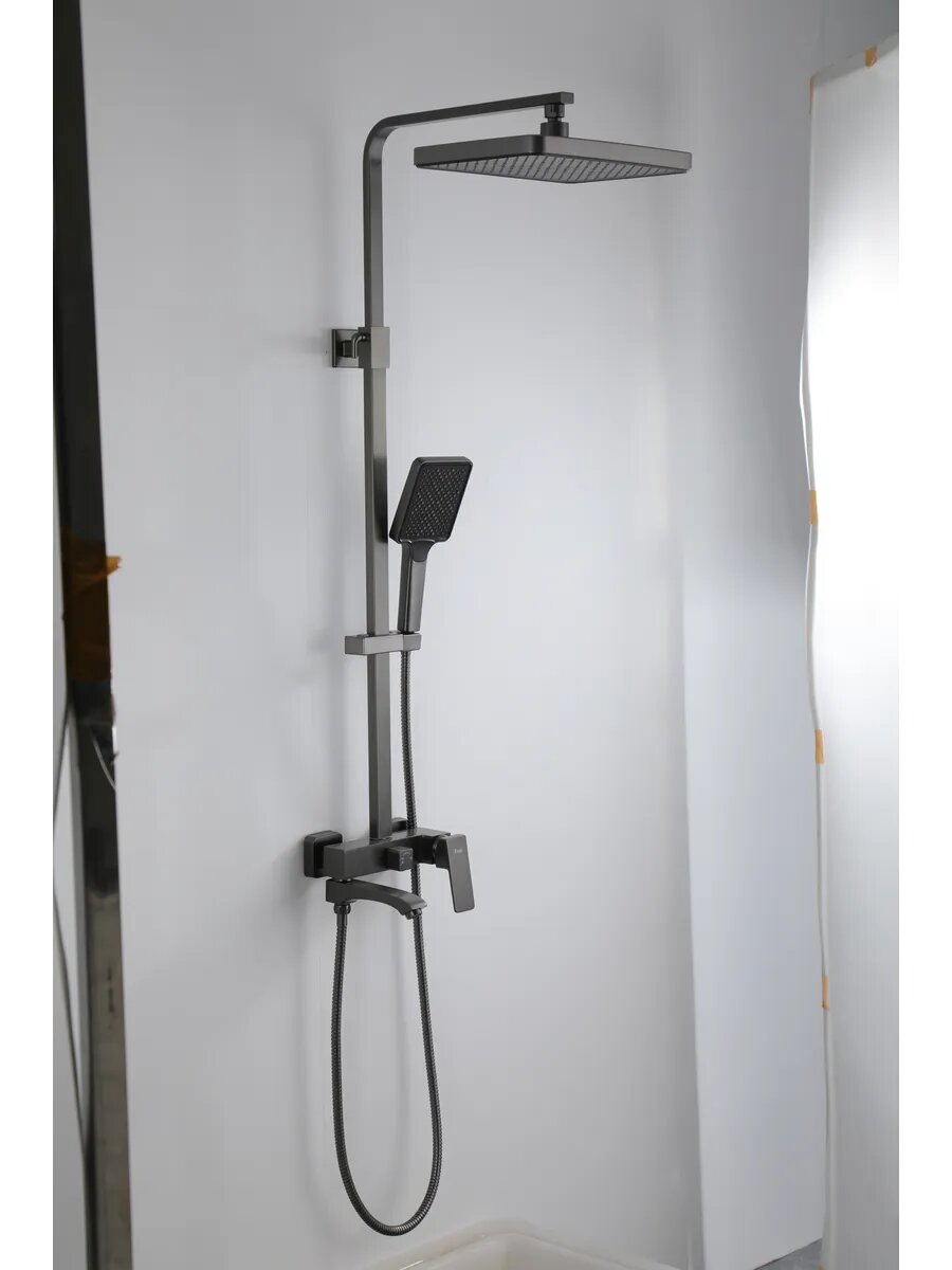 | Комплектация | верхний душ, держатель лейки, душевая стойка, душевая штанга, лейка, набор эксцентриков, переключатель потоков, ручной душ, смеситель, шланг, эксцентрик |