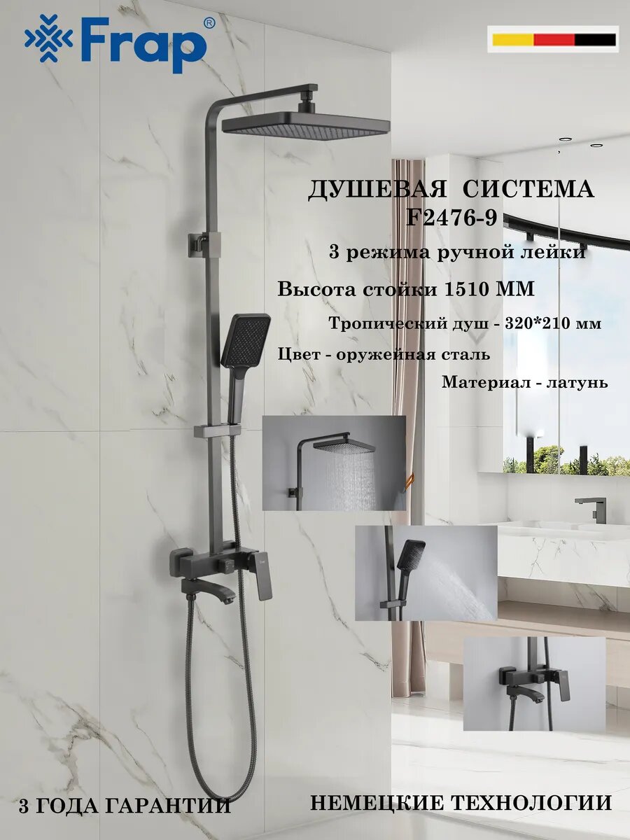 Душевая система с тропическим душем Frap F2476-9: сравнение цен, характеристики, фото, актуальное наличие и цены.
