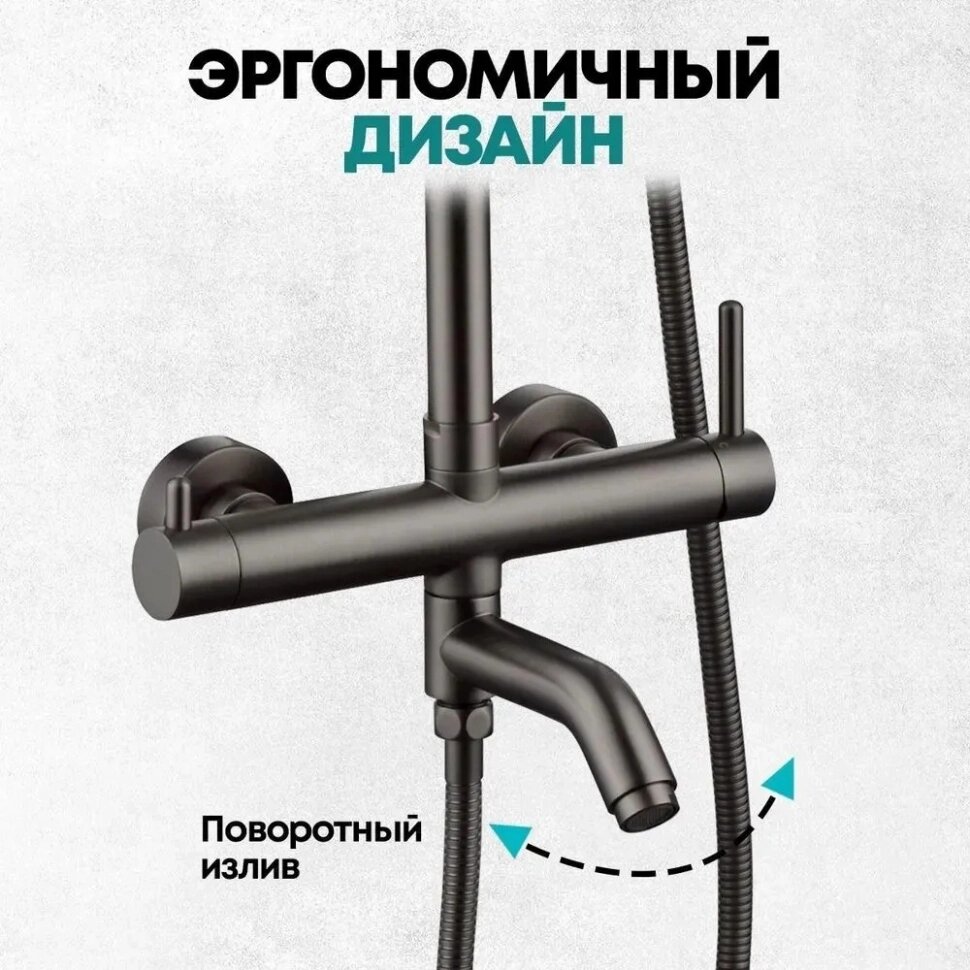 | Комплектация | верхний душ, держатель лейки, душевая стойка, душевая штанга, излив для набора воды, лейка, набор эксцентриков, настенный держатель, отражатель, прокладки, ручной душ, смеситель, шланг, эксцентрик |