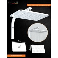Тропический душ имеет размеры 29,5х19,3 см, лейка душа имеет 3 режима работы. Система крепится на круговых шарнирах с углом вращения 360 градусов, что обеспечивает удобство и комфорт при использовании. Тип подводки - жесткая, а размеры товара представлены на фото.