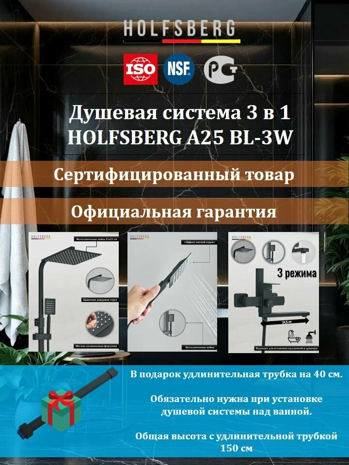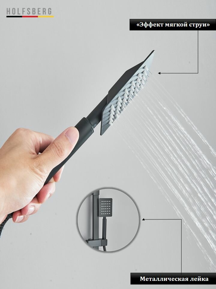 Душевая система с тропическим душем и смесителем черный HOLFSBERG с лейкой 25х25 см: сравнение цен, характеристики, фото, актуальное наличие и цены.