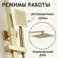 Купить Душевая система с тропическим душем и смесителем, с лейкой, нержавеющая сталь/матовое золото с доставкой по всей России. Душевая система с тропическим душем и смесителем, с лейкой, нержавеющая сталь/матовое золото: сравнение цен, характеристики, фото, актуальное наличие и цены.