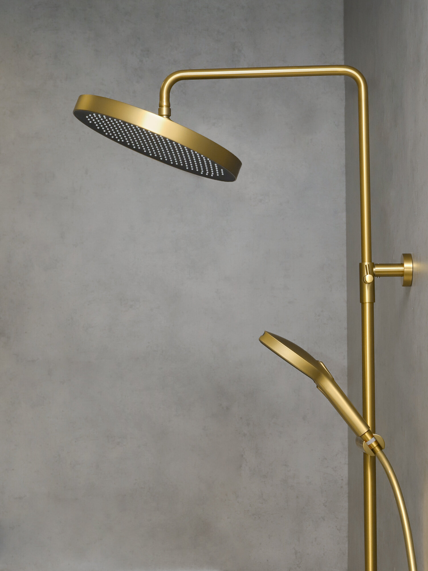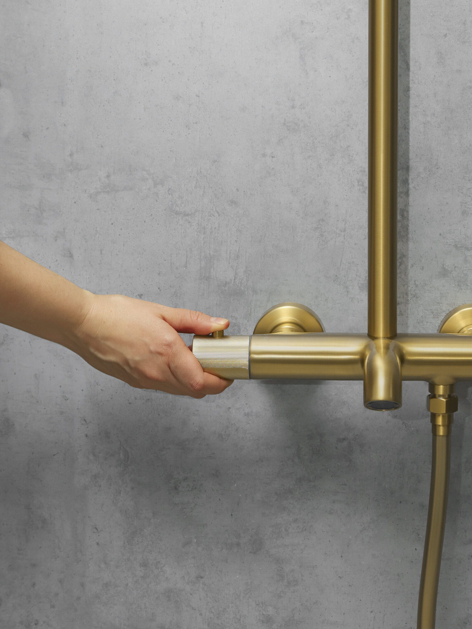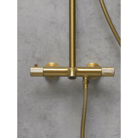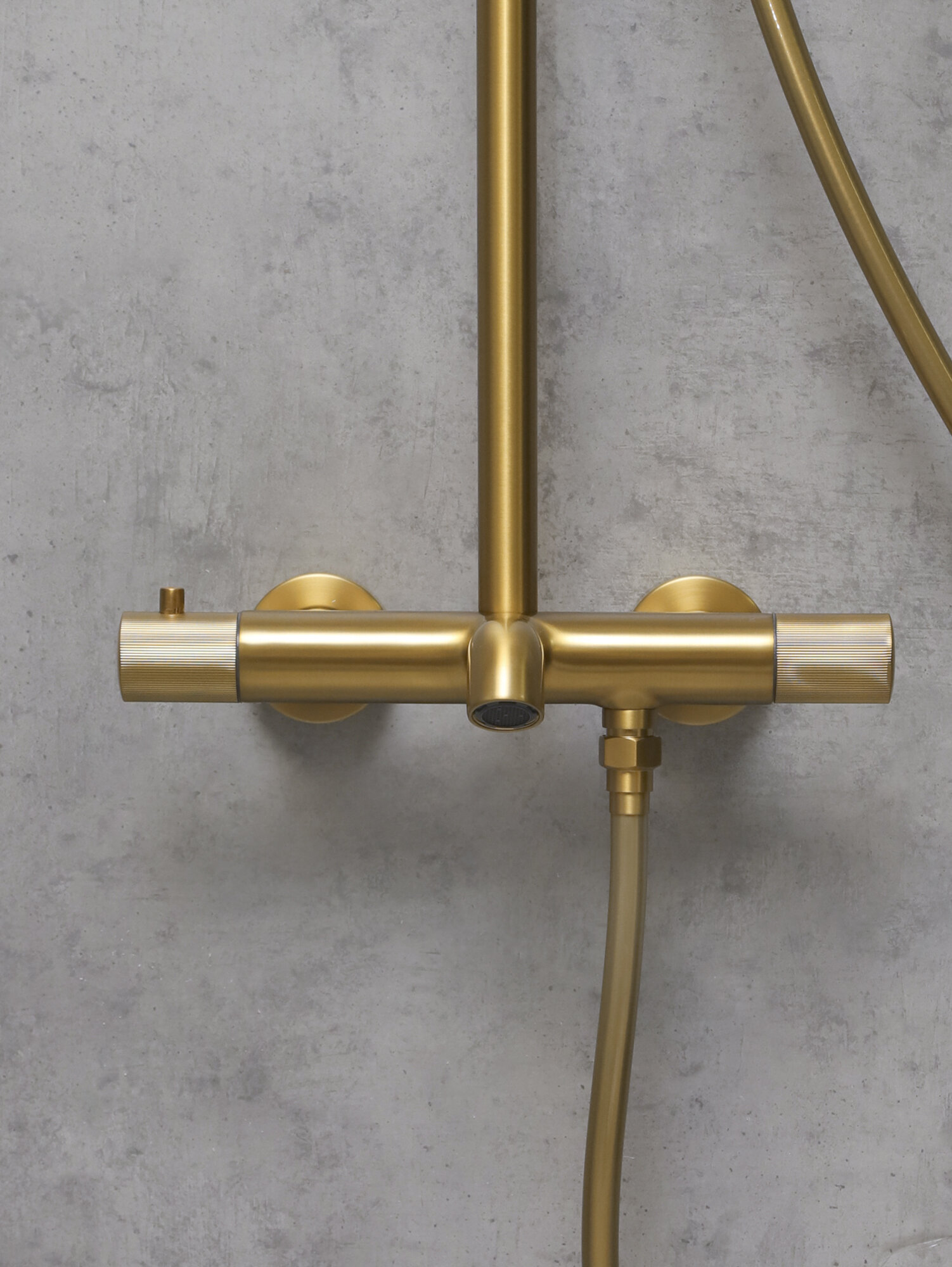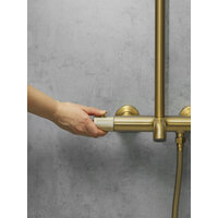 Купить Душевая система с тропическим душем и смесителем с термостатом, матовое золото с доставкой по всей России.