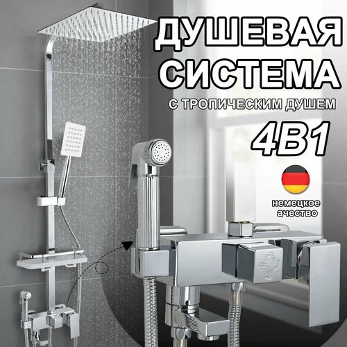Купить Душевая система с тропическим душем и смесителем, смеситель для ванны, в ванную, стойка, Серебро, 4 В 1 с доставкой по всей России.
