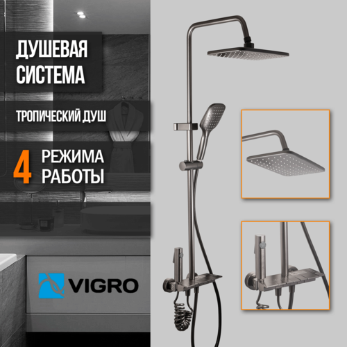 Душевая система с тропическим душем и смесителем VIGRO VG2404-21 темно-серая: сравнение цен, характеристики, фото, актуальное наличие и цены.