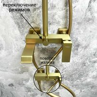 Этот душевой комплект имеет стильное и прочное покрытие золотистого цвета, которое придаст ванной комнате элегантный и современный вид. Материалы высочайшего качества гарантируют долговечность и надежность использования, защищая поверхность от коррозии и износа.