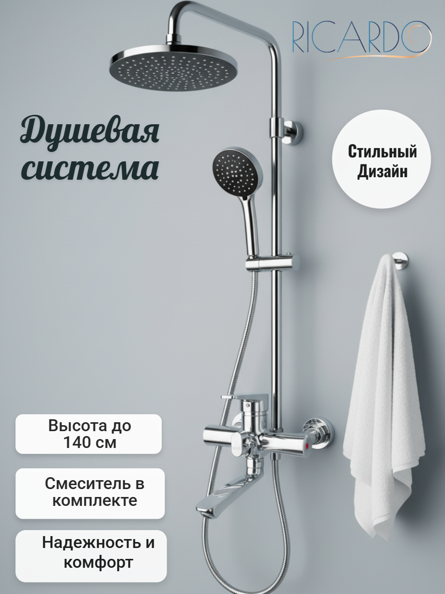 Душевая система, тропический дождь, смеситель для ванны, комплект RICARDO R1624-1, хром: сравнение цен, характеристики, фото, актуальное наличие и цены.