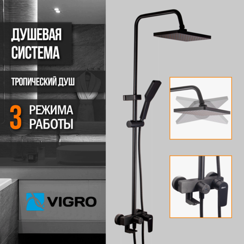 Душевая система с тропическим душем Vigro VG2403-7 черный матовый - это высококачественный комплект для ванной комнаты, который сочетает в себе функциональность и стильный дизайн.
