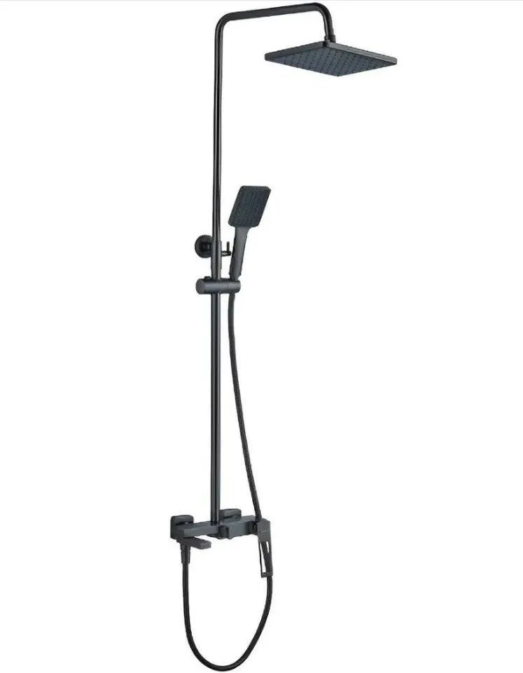 Купить Душевая система с верхним тропическим душем, смесителем, поворотным изливом и лейкой, графит с доставкой по всей России.