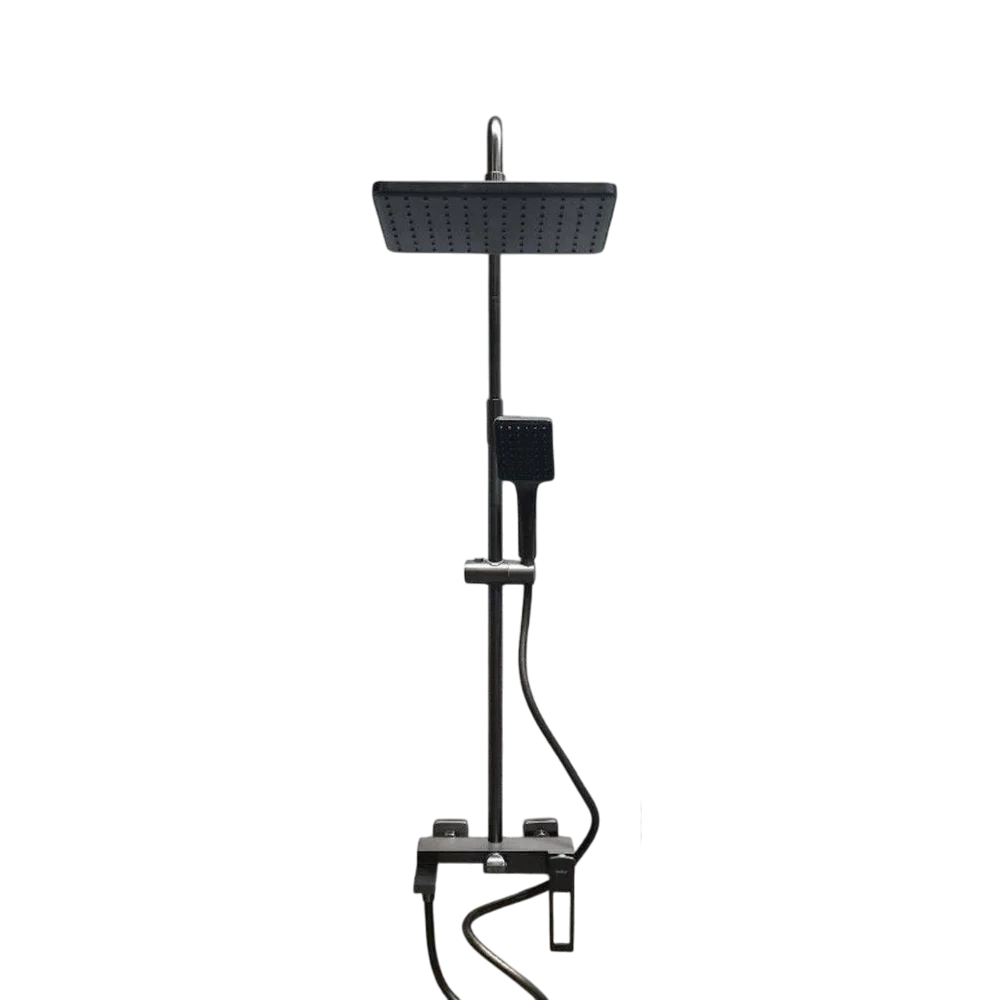 | @Комплектация | душевая штанга, верхний душ, ручной душ, душевой шланг, смеситель, полочка |