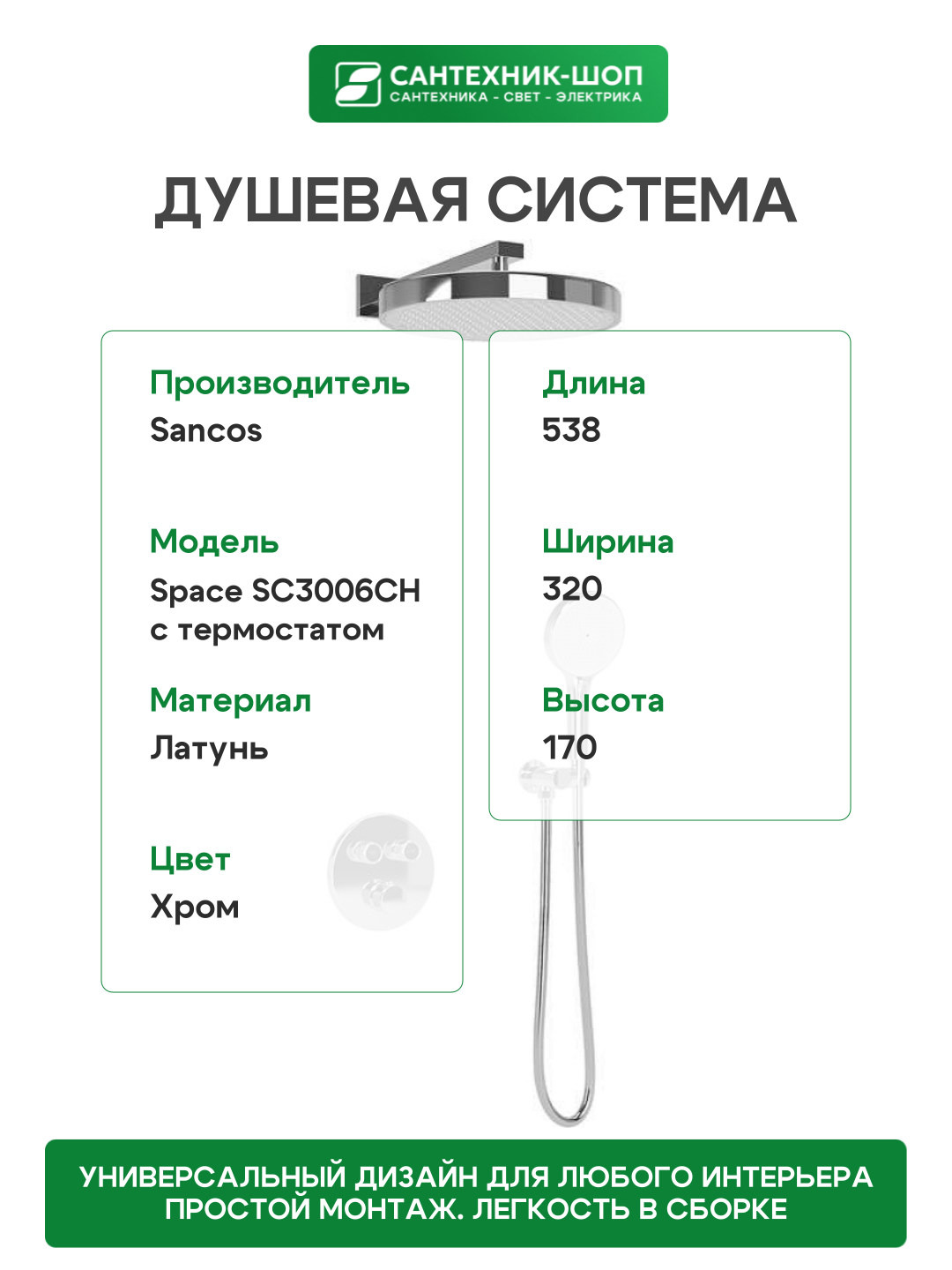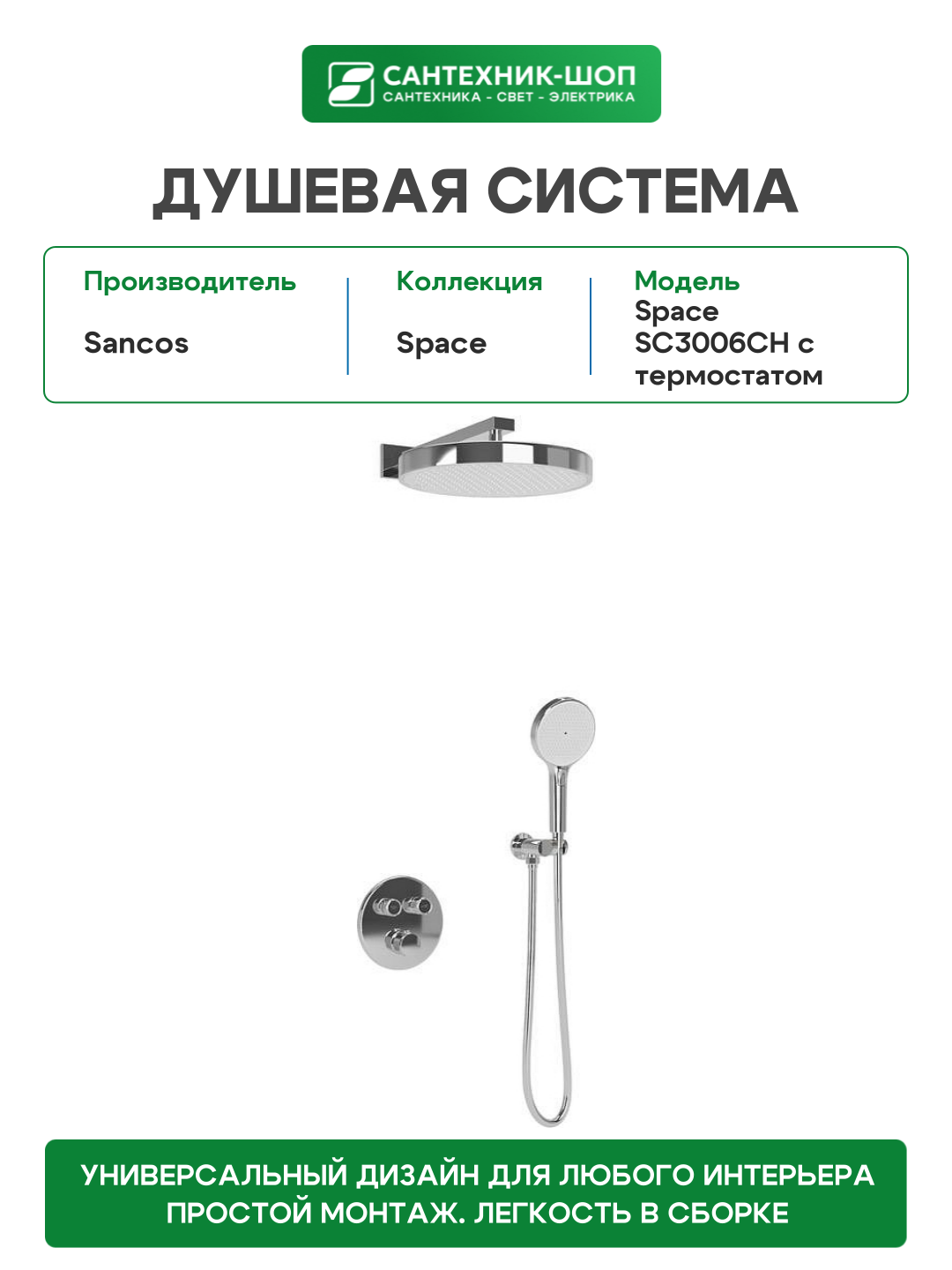 Душевая система Sancos Space SC3006CH с термостатом Хром: сравнение цен, характеристики, фото, актуальное наличие и цены.