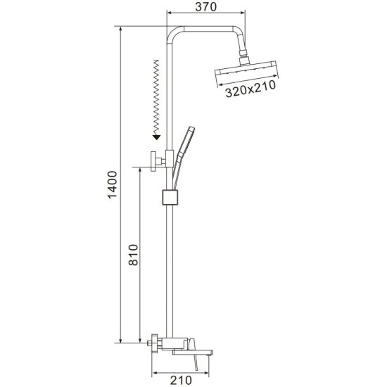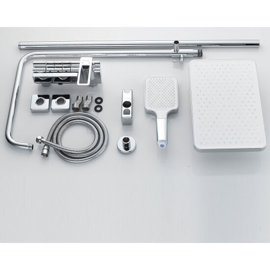 | Комплектация | верхний душ, держатель лейки, душевая стойка, душевая штанга, кронштейн, лейка, набор эксцентриков, ручной душ, смеситель, шланг, эксцентрик |