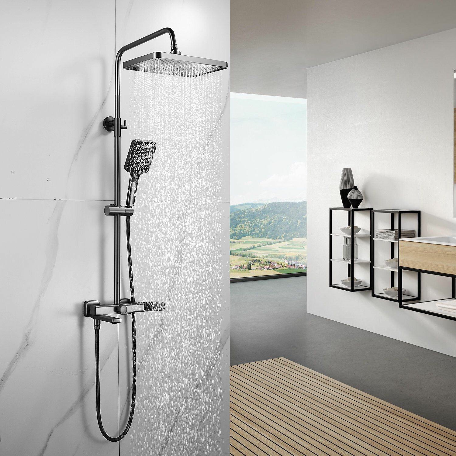 Душевая система Shevanik S9936T выполнена в современном стиле и окрашена в оружейную сталь, что придает ей элегантный и стильный вид. Серый цвет корпуса гармонично сочетается с другими элементами интерьера ванной комнаты.