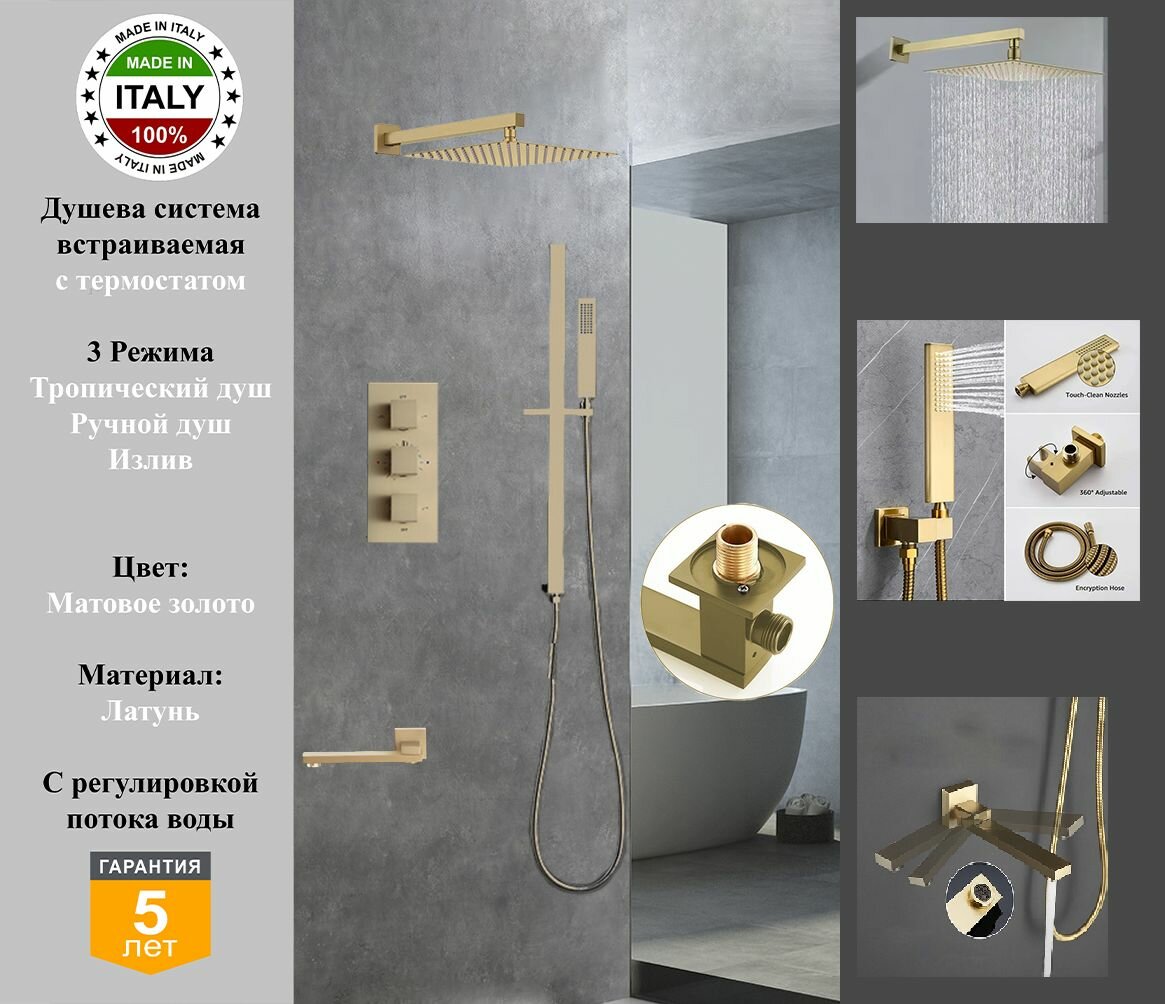 Купить Душевая система скрытого монтажа c термостатом Gristo Gold Matte Termo GGMT-4062-2 золото матовое с доставкой по всей России.