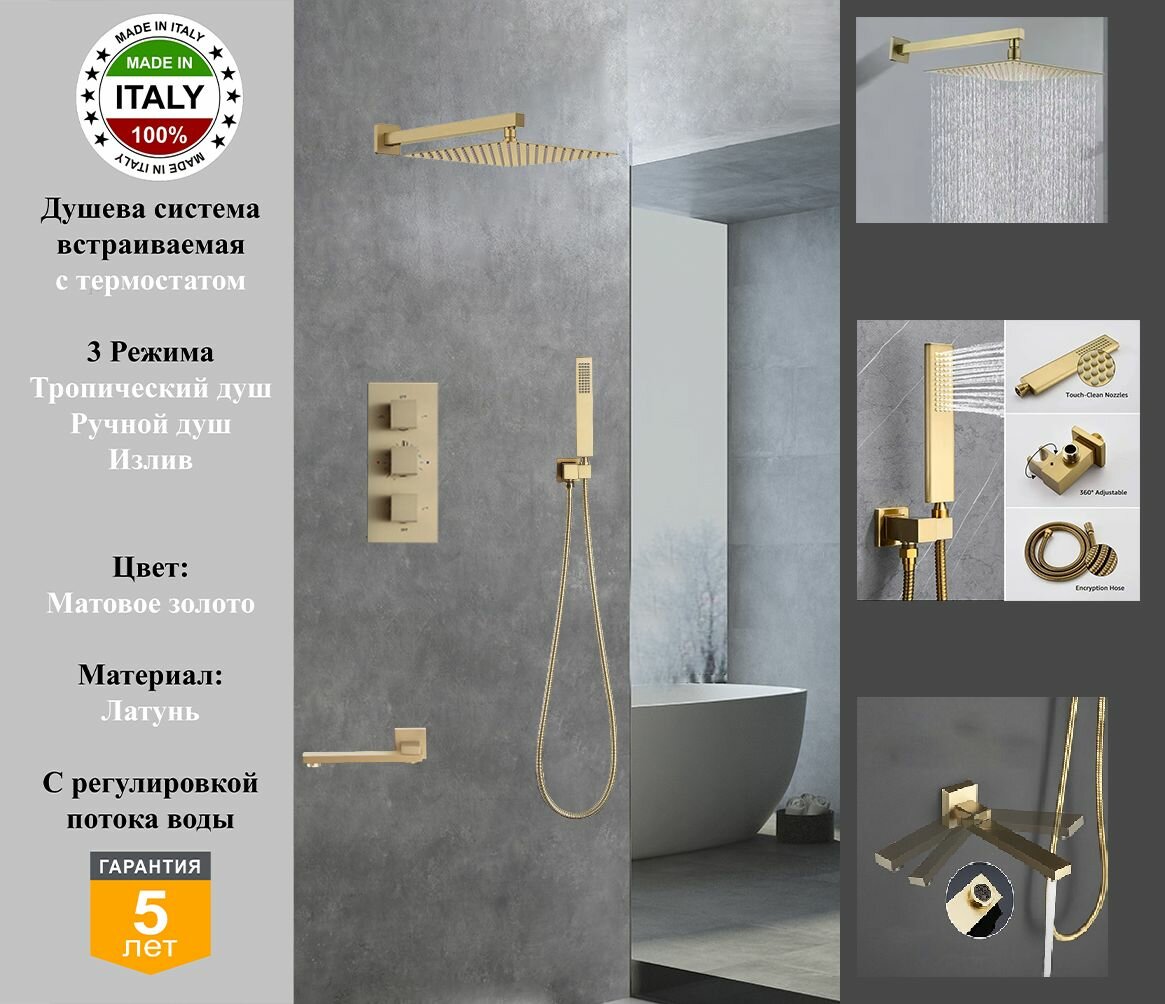 Купить Душевая система скрытого монтажа c термостатом Gristo Gold Matte Termo GGMT-4062 золото матовое с доставкой по всей России.