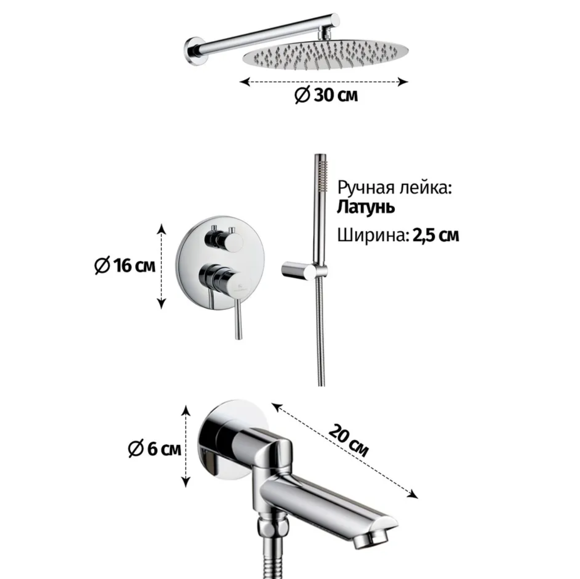 Данный товар подойдет вам, если вы ищете смеситель для ванны и душа, душевой гарнитур, душевую систему, душевой комплект, душевую стойку, тропический душ со смесителем, душевую стойку со смесителем, встраиваемый комплект для душа, тропический душ комплект.