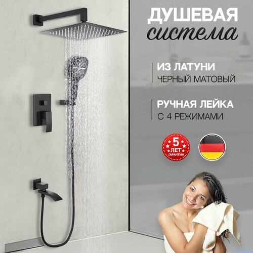 Купить Душевая система скрытого монтажа из латуни Hansberge H6077BL (квадрат, черный матовый) с доставкой по всей России.