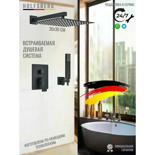 Купить Душевая система скрытого монтажа с тропическим душем черная 30х30 см HOLFSBERG S30 3v1 BL-1 с доставкой по всей России.