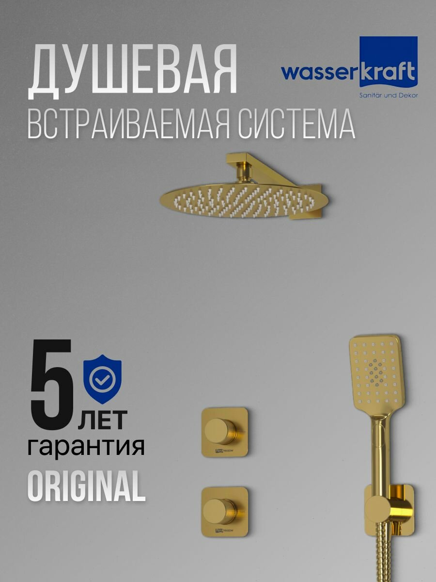 Душевая система скрытого монтажа с тропическим душем WasserKRAFT, Золотой: сравнение цен, характеристики, фото, актуальное наличие и цены.