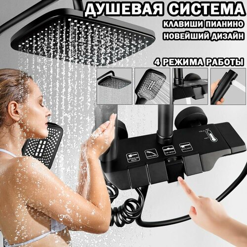 Купить Душевая система, смеситель для ванны с тропическим душем и смесителем, тропический душ, комплект, 4 В 1, черный с доставкой по всей России.