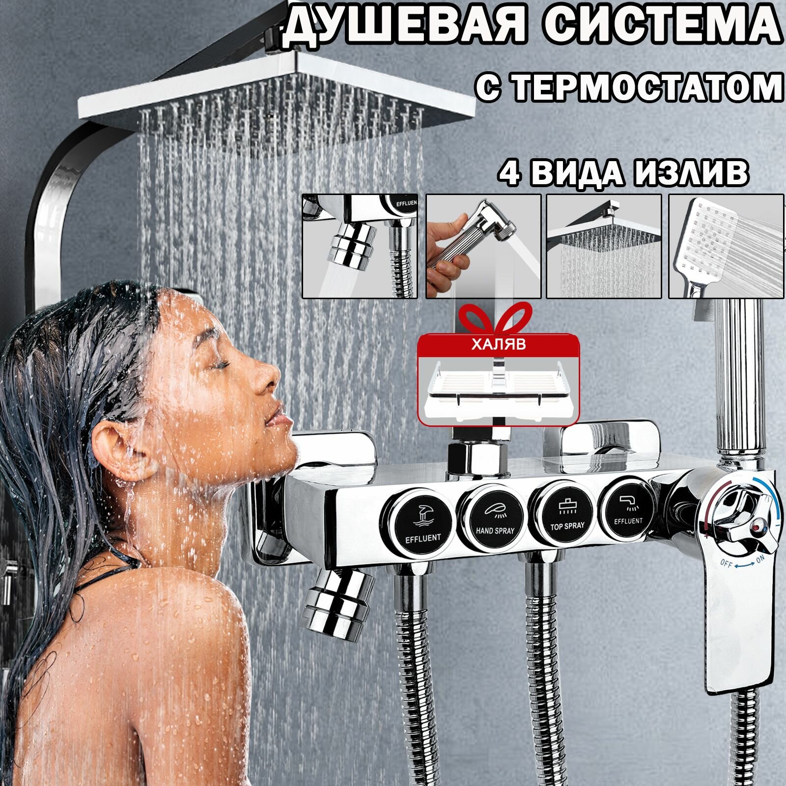 Душевая система, смеситель для ванны, тропический душ, с тропическим душем и смесителем, комплект, с термостатом, Серебро: сравнение цен, характеристики, фото, актуальное наличие и цены.